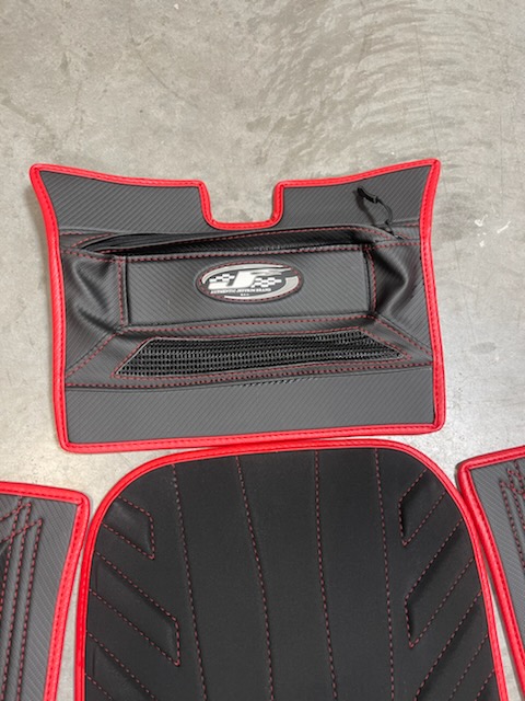 Jettrim Yamaha SuperJet mat kit 2021+ come with the highest-quality, maximum-traction materials. Available in your choice of colors and materials to customize your ski for your personal style. This mat kit includes four pieces: dash, left side mat, right side mat, bottom mat, bottom mat padding, and boarding handle delete. Front hump, side mat lifters, and tray kickers are additional pieces to give you better grip and comfort.